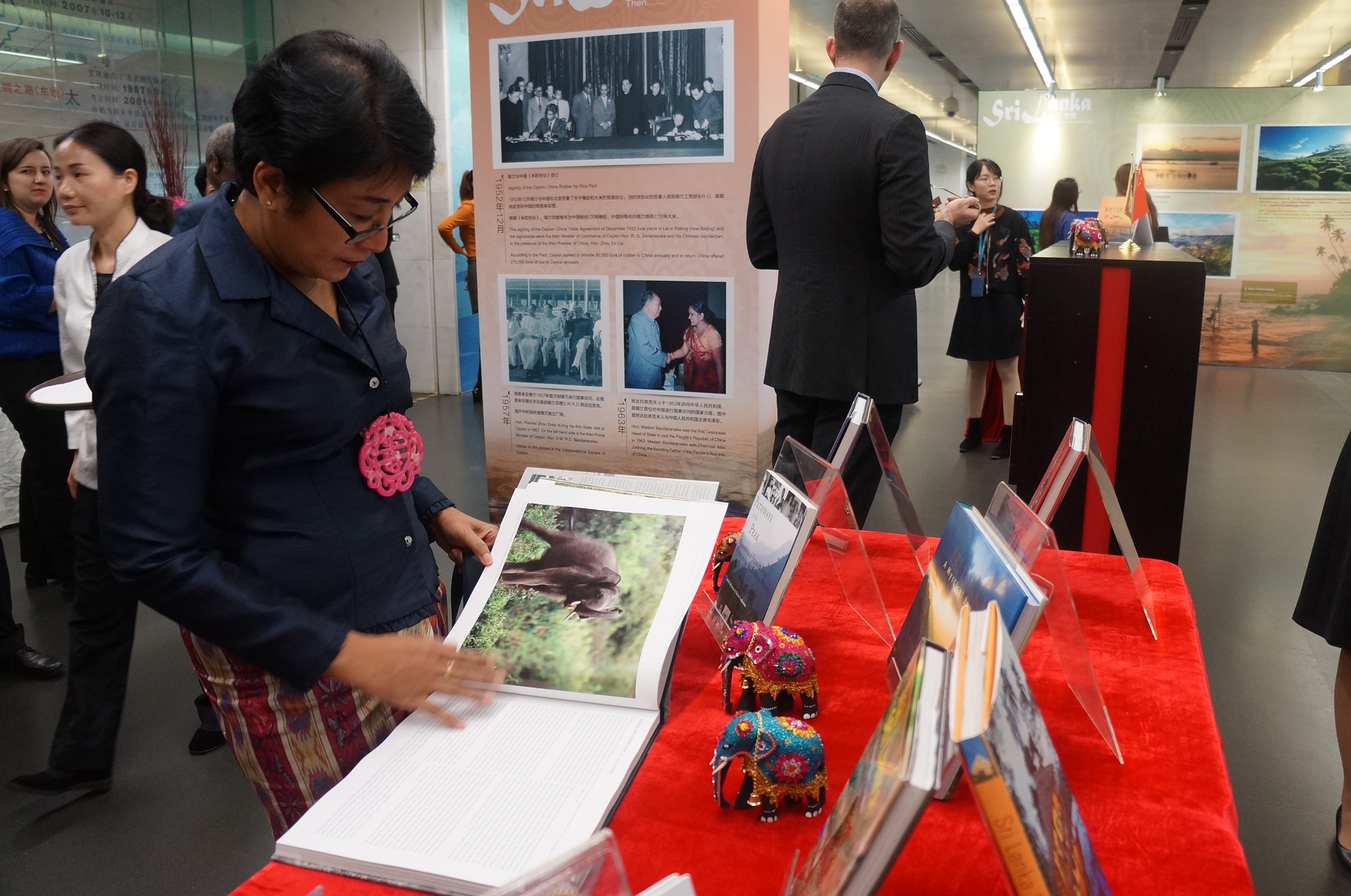 作为系列活动的一部分,“斯里兰卡掠影”主题展览共展出图片20余张,以及斯里兰卡赠书250余册。图片展现了斯里兰卡的自然风光、佛教文化、城市风貌等内容。其中还包括周恩来总理签订《米胶协定》时的历史照片,以及中斯两国领导人互访的珍贵瞬间。