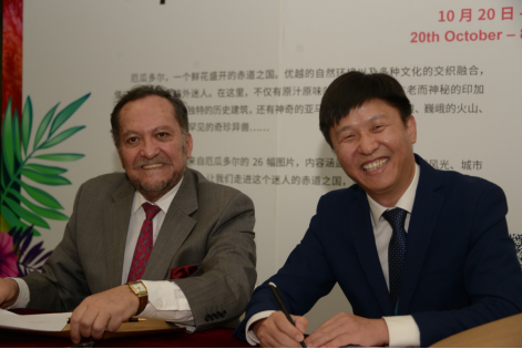 最后阿尔瓦罗·加尔西亚总领事和方家忠馆长共同签署了“赠书交接纪要”,并为“厄瓜多尔图书之窗”揭幕。
