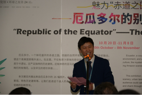 阿尔瓦罗•加尔西亚总领事也在开幕式上发表了讲话。他指出,中厄两国拥有稳定并持续发展的战略伙伴关系,相信通过两国的文化交流,能使两国人民更加亲密。接下来厄瓜多尔驻广州总领事馆还将继续向广州图书馆捐赠图书,增加“厄瓜多尔图书之窗”的馆藏。他表示希望通过这次活动和图书之窗的建设与不断完善,能激发中国读者对厄瓜多尔更多的兴趣。