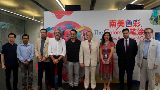 8月10日下午,由广州图书馆与厄瓜多尔驻广州总领事馆联合举办的“多元文化馆•环球之旅第29站:南美色彩,信笔涂鸦”系列活动开幕式在我馆多元文化馆举行。厄瓜多尔驻广州总领事阿尔瓦罗·加尔西亚先生、广州图书馆副馆长罗小红女士,厄瓜多尔著名涂鸦艺术家Jorge Calderon先生以及新加坡、日本等国家驻穗领事馆的官员出席了仪式,并参观了展览。