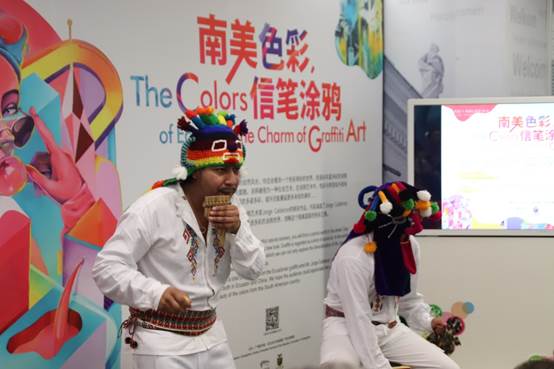 本次展览展出了厄瓜多尔涂鸦艺术家Jorge Calderon先生的17幅涂鸦艺术作品(复制品)。Jorge Calderon先生不仅具有丰富的本土涂鸦艺术创作经验,且还有在中国的生活和创作经历,本次展出的作品融合了Jorge Caldero先生的家乡背景和在中国的生活经历,内容涵盖了歌颂母爱、南美传统文化、深圳公路景观等,为我们展示了独特的涂鸦艺术风格。在开幕式前,来自厄瓜多尔的两位音乐人现场演绎了独具厄瓜多尔民族特色的传统印第安乐曲,展示了独特的传统印第安乐器。