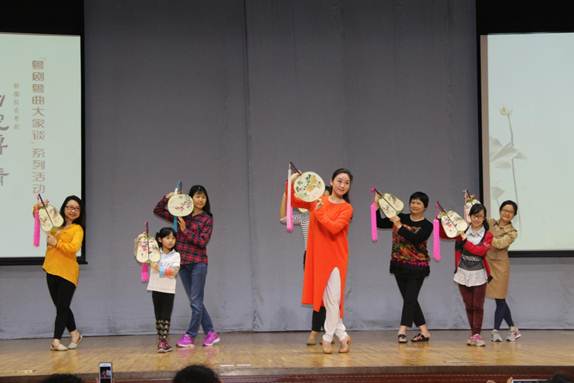图11.朱红星现场教读者舞水袖,小读者也参与其中,不亦乐乎