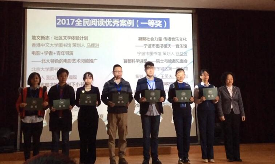 图2.“刘斯翰先生诗词系列讲座”荣获“2017全民阅读优秀案例一等奖”