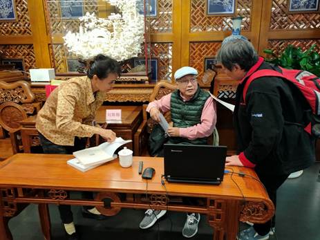 图1:刘斯翰老师向读者介绍咏柳花佳句