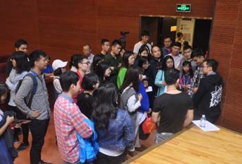 【讲座结束后热情交流的观众】
