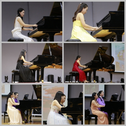 图5:杨凌云教授与表演嘉宾林文婧演奏钢琴四手联弹《平安夜》