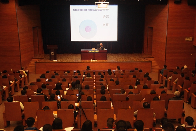 图2:全场满座,赖老师讲解“语言”与“文化”的关系