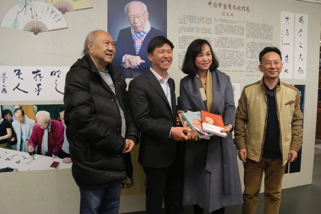 由广东省文联、省文艺评论家协会、广州图书馆、广州市饶宗颐学术艺术馆、中山大学饶宗颐研究院、西泠印社主办的“选堂文翰”——饶宗颐教授学术艺术著作展于2月24日上午在广州图书馆人文馆举行开幕式,展期至4月16日。这是广东省文联等主办单位响应习近平总书记提倡“爱读书、读好书、善读书”的号召,举办的“我们的中国梦——文化进万家”惠民活动之一。广州市饶宗颐学术艺术馆馆长邓伟雄博士、广东省文联副主席洪楚平先生、广东省文艺评论家协会副主席梁少锋先生、广州图书馆方家忠馆长、广东省文化艺术界代表人物、饶学研究者、花城出版社、读者代表等出席了开幕式。