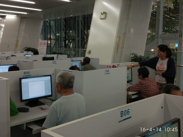 如今的老年人越来越新潮了,他们面对新事物不再畏畏缩缩,而是勇于尝试、始终追求。电脑就是他们极想尝试的一个新事物,可是囿于现实情况,不是每个老年人都有条件学习使用电脑。为了满足这些想学却没条件学的老年人的需要,我馆电子阅览室从2007年开始以“爱心电脑俱乐部”的名义免费为老年人们开办电脑培训班,10年来,我部积极开展以老人为对象的爱心电脑俱乐部培训活动。2016年全年共举办老人电脑培训四期,共16场培训,每期均分为基础和提高两个班,分别安排在四、五、九、十月份。每班一周一课共四节课,共有近600人次参加培训。