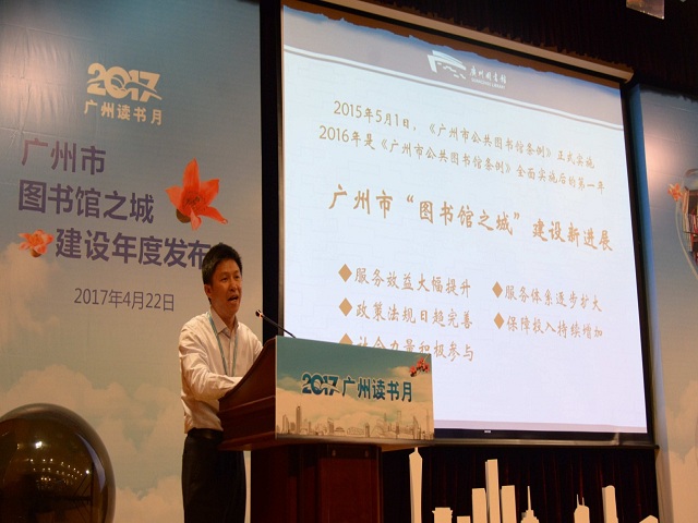 2017年4月为第二个广州读书月,在4月23日“世界读书日”到来之际,作为广州市公共图书馆的中心馆,广州图书馆举行广州市“图书馆之城”建设2016年度发布会,向公众介绍过去一年广州市公共图书馆建设方面取得的成绩,并同时宣布启动“广州阅读联盟”建设及公布《阅读广州——“广州文库”入选书目(1978-2016)》等,并为获得2017年度广州市公共图书馆的“好读者”、“好馆员”等举行了颁奖仪式,使以“阅读,让花城更美好”为主题的广州读书月更增添了一抹亮丽的色彩。