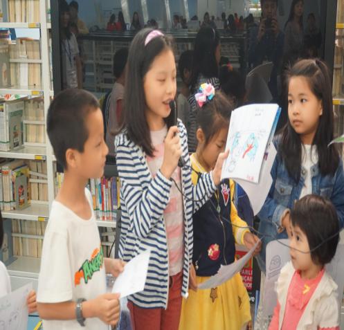 语言绘画小比赛,一张张结合单词意义小故事与语境的绘画作品,包裹着小读者巧妙的心思、绘画技巧以及对单词的独特理解,孩子们讲述自己的绘画故事时,一脸的自豪。她们的引人入胜的表情和故事引得大人们拍手称好。一起来看当天活动现场!