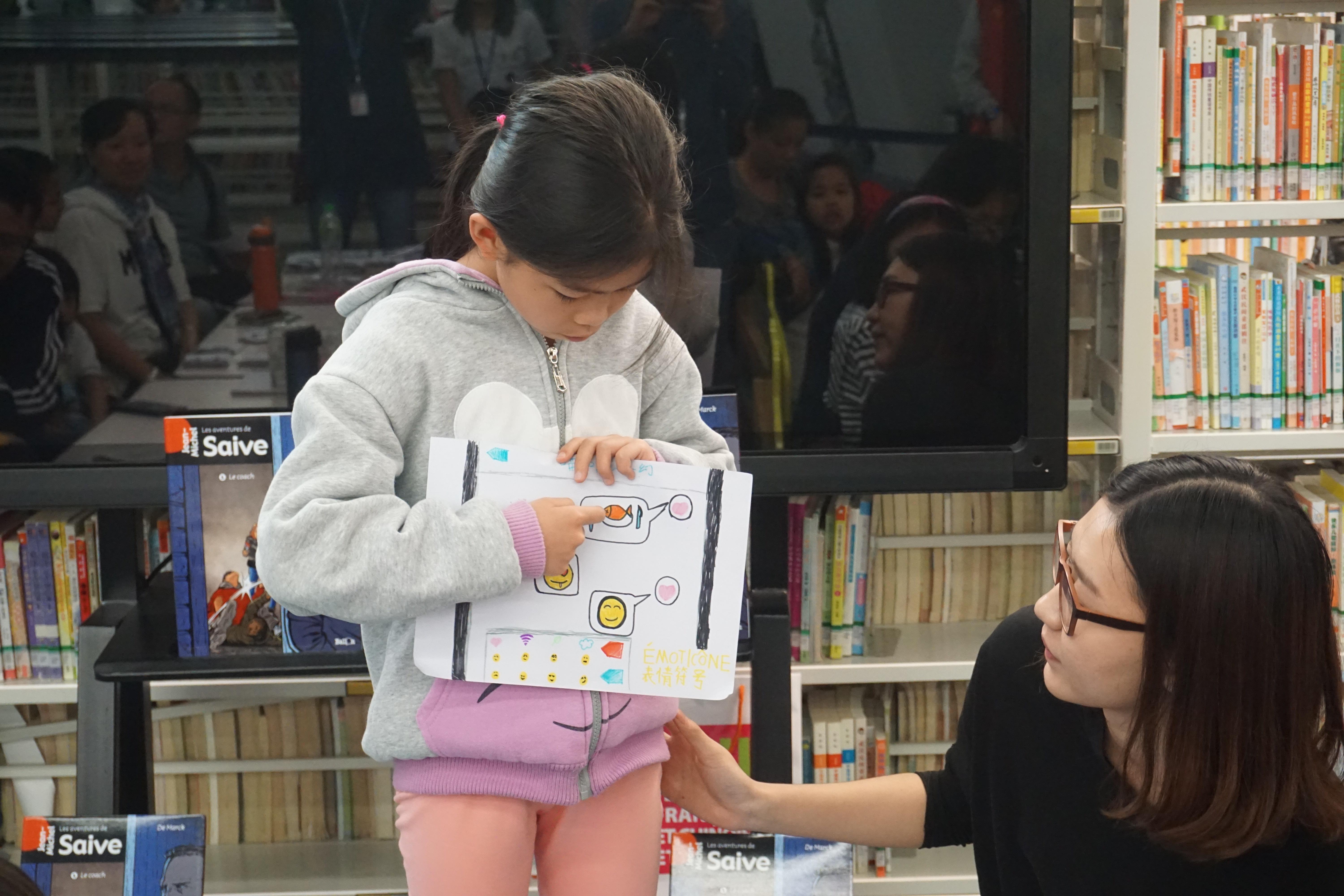 工作人员将小读者分五组,每组发放一套字母小卡片,小读者按字母来拼单词,拼写速度最快最准确的读者将获得由广州法语联盟提供的法语漫画一本。