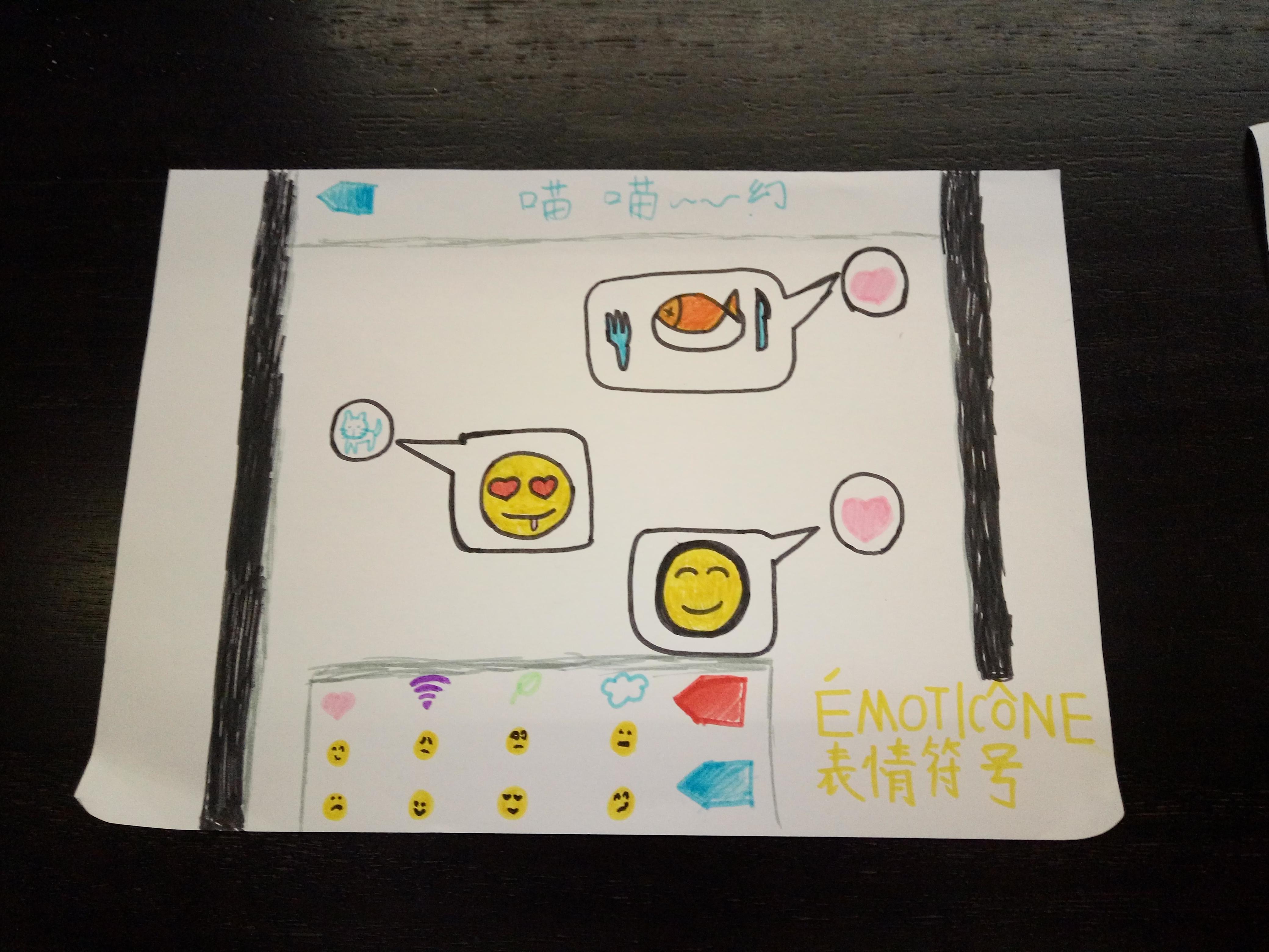 “我画的是这个人发了个吃饭的表情,另外一个人发了流口水很想去的表情,然后这个人回了他一个微笑。”