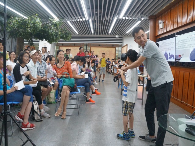 活动由“古‘六艺’知识分享”、“九宫格小测试”、“VR与君子六艺”和体验“VR君子六艺”四个环节组成。VR是一种虚拟现实技术,通过计算机仿真系统,生成一种模拟环境,实现多源信息融合的、交互式的三维动态视景,使得用户可以沉浸到该环境中。利用现代化VR技术,将古六艺内容数字化、科技化,使之更加符合现代人的阅读习惯,带来身临其境的体验。