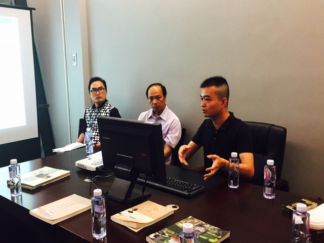 广州市人大代表、台盟广州市委专职副主委刘进贤(中)正在阐述打造“海山仙馆”的构想