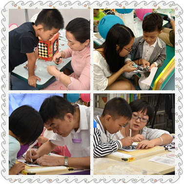 为了能够让现场的孩子能够完成一件完整的作品,助教老师们也是全情投入协助孩子们一起制作······