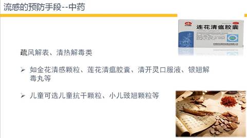 家里可以常备一些疏风解表、清热解毒类的药物。在有流感症状时,可以先服用一下药物进行预防,如金花清感颗粒、莲花清瘟胶囊、清开灵口服液、银翘解毒丸等。儿童可选用儿童抗干颗粒、小儿豉翘颗粒等。