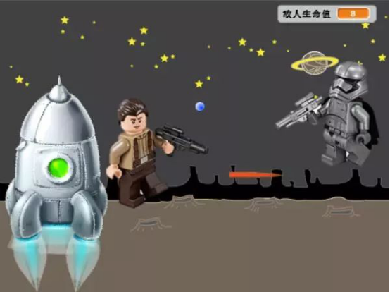 用Scratch制作的“猎鹰保卫战”案例,能够支持小勇士们用键盘操控战士这一角色上下左右移动,躲避外星侵略者的子弹,同时按下空格键发射光波,击败外星侵略者,保卫猎鹰火箭。