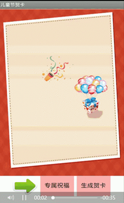 3.生成贺卡:点击按钮,自动保存制作的贺卡并储存于手机相册,可分享至微信、微博等。