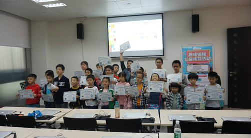 课程结束后,老师为小读者们颁发了趣味编程学习证书。小读者们拿到证书后都兴高采烈地向家长展示,一派欢天喜地的景象。家长们纷纷表示趣味编程公益体验活动举办得非常有意义,让孩子参加IT成长之路系列活动,不仅让孩子在快乐中学习了编程知识,拓展了视野,还激发了孩子的兴趣、想象力、创造力和挖掘了潜能,培养了孩子的细心、耐心和专注力,并锻炼了孩子的逻辑思维能力。