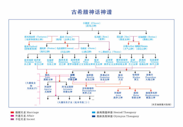 在最早的西方文化中,神都是跟自然现象有关的神,如天空之神、海洋之神、大气之神等,并用这种方式来解释宇宙的起源。到了宙斯之后,就出现了很多跟人文有关、社会有关的神,如战神雅典娜、美神、月亮之神等。神谱给了神、人和宇宙的起源说、进化论,通过系统演化的内部动因,主导命运,是希腊文明中重要和突出的主题。