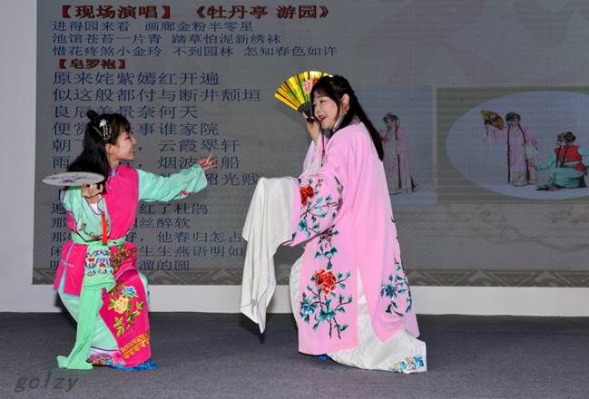 ▲“红楼氍毹”讲座上,业余演员现场表演昆曲《牡丹亭》