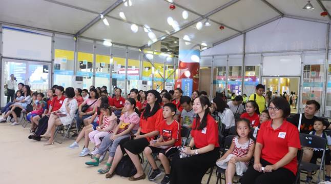 ▲8月18日晚上,阅读推广沙龙区:由广东省南方阅读公益基金会承办的《我是咯吱窝里蹦出来的?》绘本签售会,绘本作者赵娜讲述男生女生身体差异。