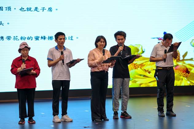 广州图书馆特别邀请了一群视障读者朋友来到现场,由馆员李芷筠馆员带领他们共读科技经典《看不见的森林:林中自然笔记》选段。视障人士服务是广州图书馆的重要服务之一,广图视障人士服务区位于北一楼,于2013年6月起对外服务,以读者需求为导向,目前通过“盲读快乐营”项目搭建了图书馆与社会力量共建、共享的助残服务平台。广图先后推出口述影像、触摸阅读、粤读角、非视觉摄影、走读广州名胜古迹/博物馆等面向视障人士的多感官融合阅读特色活动,用“真实”激发阅读兴趣,增强视障人士的信息获得感。