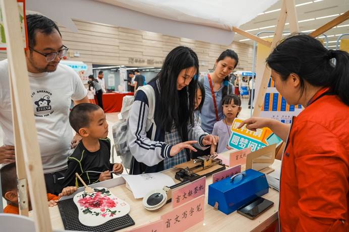 “嘉年华活动结束后,盲文科普展览将继续在视障人士服务区展出”,馆员蔡东恺介绍,“希望能通过这项活动让更多读者了解盲文阅读,鼓励更多人加入无障碍阅读推广志愿服务,为文化助残事业添砖加瓦。”