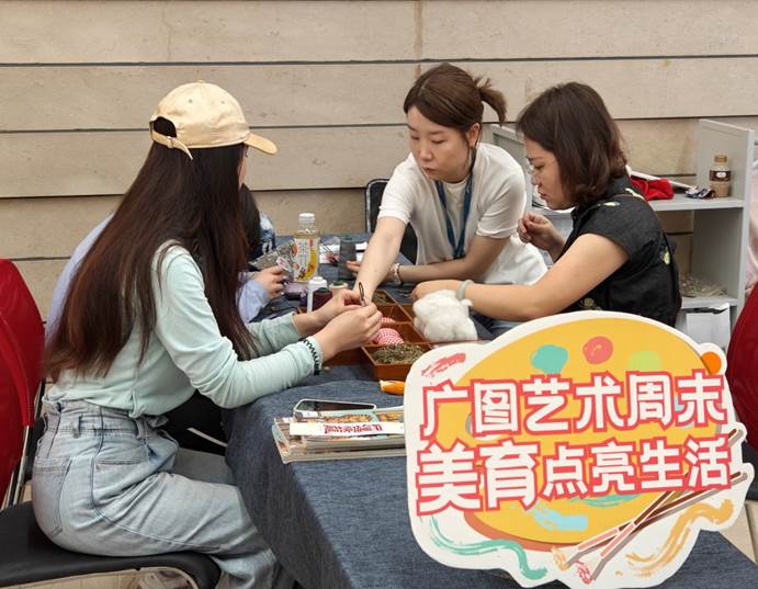 在“艺术周末”体验摊位现场,为读者展示并指导制作各式古风香囊。其中柿子和苹果形状的香囊分别寓意“万事如意”“岁岁平安”,深受读者欢迎。摊位还设有特色套章,现场吸引了许多读者上前咨询创客空间服务与“艺术周末”系列活动。