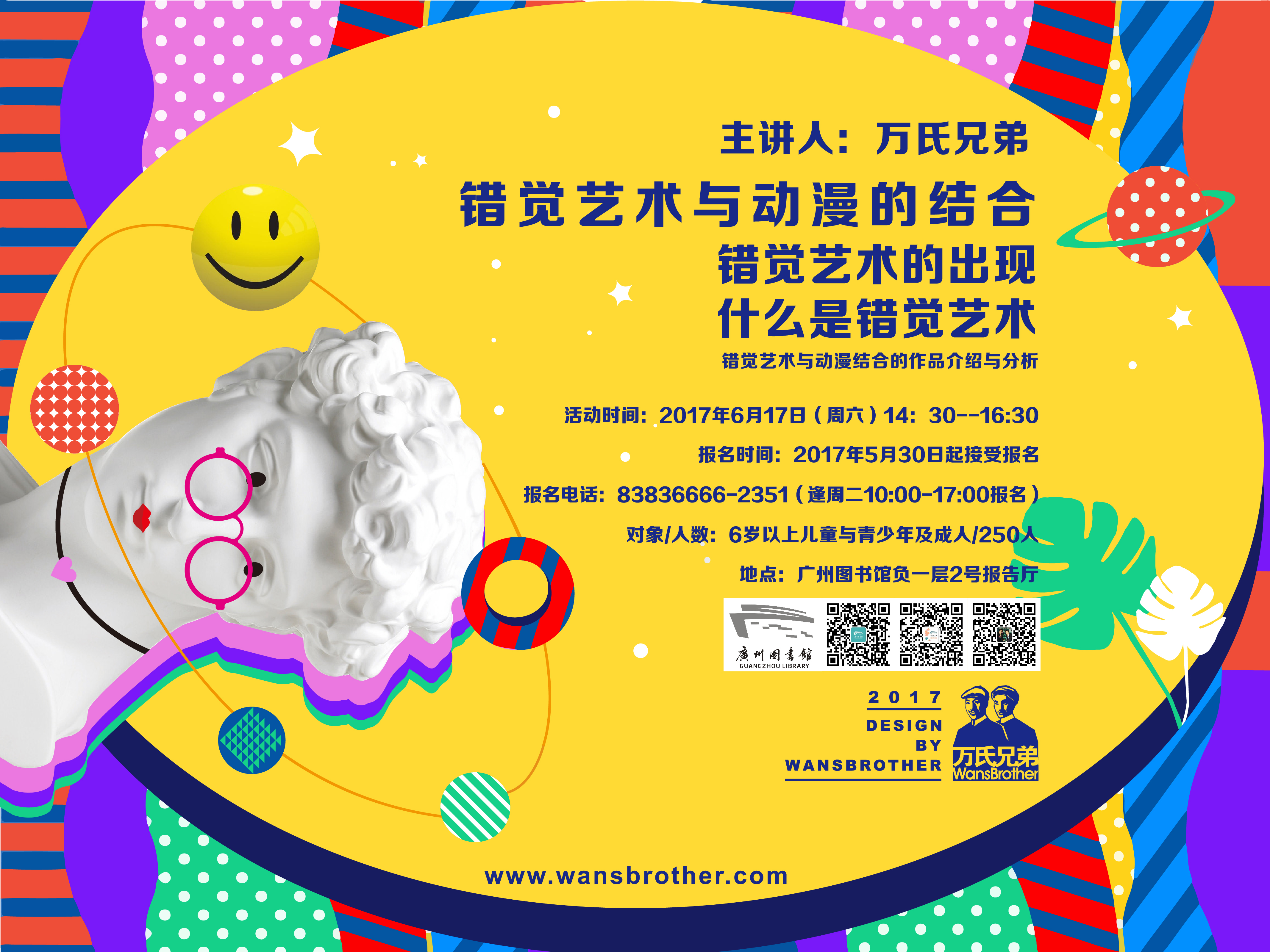 为配合大赛开展,【阅创空间·青少年艺术坊】品牌活动开设系列培训(三),和广州市万瑞广告有限公司合作,有幸邀请中国顶尖的错觉艺术家,国际上知名的3D地画大师(“世界上最长3D地画”英国吉尼斯世界纪录保持者):万氏兄弟亲临广州图书馆,为广大儿童与青少年读者开设“错觉艺术与动漫的结合”主题讲座及Mini 3D画体验课工作坊,使读者对漫画阅读及创作有更深入了解。