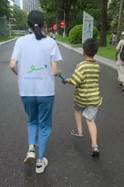“花城有约“慢跑正式启动,领跑员与视障朋友们通过魔术巾相牵,在花城广场的林荫道上缓缓前行。这条魔术巾既是安全牵引的纽带,更像传递信任的桥梁,领跑员时而轻抖布料示意转向,时而用温和的声音播报路况:“左边有斜坡、前方约 5 米是转角,我们跟着节奏慢慢转”视障朋友们微微侧着头,捕捉着空气中的声响与魔术巾传来的细微力道,脸上漾着舒展的笑意;领跑员们则时刻留意着前方路况,把每一句提示都说得清晰又轻柔。阳光透过叶隙洒在他们身上,流动的身影与飘动的魔术巾交织成一幅鲜活的画面,成为广场上最动人的风景。“这是我第一次和视障伙伴一起跑步,原以为会很拘谨,没想到全程都很安心。“一位志愿者跑完后笑着说“他们比我们想象中更敏锐、更勇敢。”