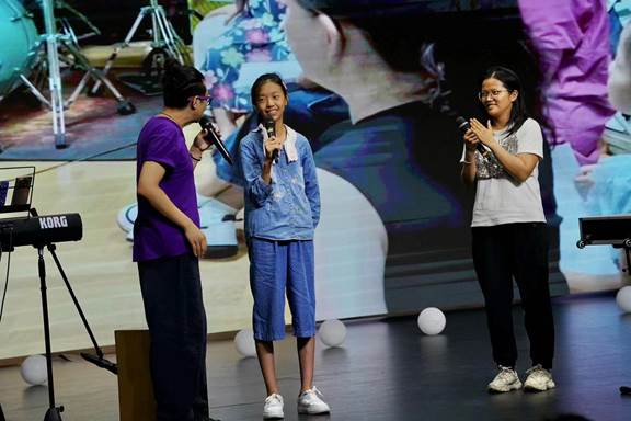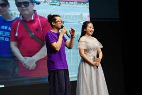 在接下来的环节中,叶星还跟他同样热爱音乐的伙伴们一起带来了内容丰富、形式新颖的歌唱表演节目:有鸿声学员朱楚茵带来的流行音乐《路过人间》,有叶星和笛萧老师陈浩瀚合作奏唱的古风+戏腔串烧《青花瓷+声声慢》,为了使节目呈现出更加精彩纷呈的效果,活动特别邀请了一批助唱嘉宾:来自三原色艺术中心的姐妹花为《一荤一素》提供即兴沙画表演,而来自启名欣艺术中心的孩子们则为启明学校的张紫娴、黄佳丽演唱的《逆光》提供群体伴舞,除此之外,还有准备冲刺音乐高考的视障学生钟瑜娜献唱《人世间》,也有同样毕业于启明学校的声音疗愈师冯兰婷和启明学子带来的合唱曲目《看得最远的地方》,叶星在其中穿插的访谈节目还出现了他10年前指导合唱的照片。不仅给读者带来了一波“回忆杀”,更是让现场读者们充分感受到了音乐给生命带来幸福感和获得感。