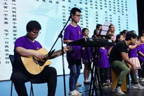 除此之外,早年毕业于广州市启明学校、如今同在鸿声从事音乐教学的罗伟俊、郑浩钊和陈伟杰也分别带着吉他、键盘和箱鼓来到了舞台上,为鸿声学员们合唱的《找自己》伴奏。而为了本次活动的压轴节目,叶星早在活动前两周就发起了合唱歌友社的招募,歌友们在繁忙的工作之余坚持参加集中排练,经过短短两周的训练之后,他们来到了广州图书馆的舞台上一起合唱《这世界那么多人》,情感细腻而又温暖人心的旋律感染了现场的读者们,不少人一起跟着哼唱。在欢快的音乐声中,活动圆满结束。