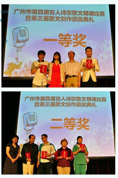 为了配合赛事提高比赛质量,在赛前邀请了广东广播电视台资深节目主持人佟冰老师和广东省作家协会散文创作委员会副主任艾云老师面向参赛者举办朗诵及散文创作指导培训,得到视障者们的好评。经过激烈的角逐来自荔湾区、海珠区的单文伟、韩织优组合朗诵《热爱生命》和来自广州市启明学校蔡炜嘉散文创作《与书同行》分别获得比赛的一等奖,同时,为了让更多的选手有参与的机会,广州市向省组委会申请报送朗诵组和散文创作组一、二等奖的选手参加广东省决赛。