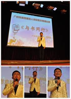 为落实党中央“全民阅读”的部署,共同建设书香社会,根据广东省残疾人联合会、广东省文化厅关于第七届广东省盲人诗歌朗诵暨第三届盲人散文创作大赛的部署,由广州图书馆、广州市盲人协会、广州市图书馆学会共同承办广州市第四届盲人诗歌朗诵暨第三届盲人散文创作大赛活动于2017年4月21日在广州图书馆成功举办。基于服务均等化的理念,本次大赛活动纳入2017年“广州阅读月”系列活动。