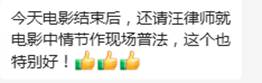 活动现场特邀了广东胜伦律师事务所的汪翊律师在观影结束为现场观众解疑了电影涉及到法律的片段进行了分析与解答。汪翊律师解释了家庭共同财产的定义、而因赌博而产生的债务 ,是不需要共同承担偿还赌债的责任。因为在我国赌博、吸毒均为违法行为,产生的债权债务不受法律保护。其中,向观众提问到何非杀害怀孕的李木子,是杀害了一人还是两人的问题时,大家都犹豫不定做不出决择。当汪翊律师揭晓正确答案是一个人时,现场观众都表示不解,都在提出疑问。原来我国婴儿出生的标准在司法实践中要采用“独立呼吸说”,没有离开母体就不受法律保护……涨知识了吧。