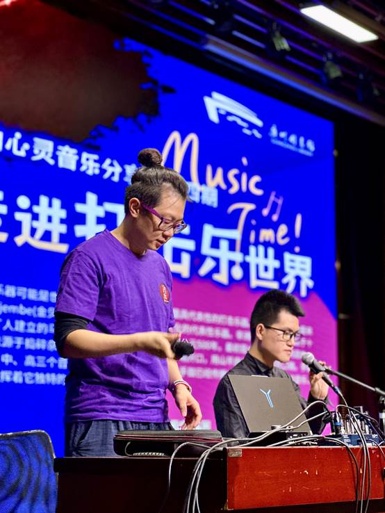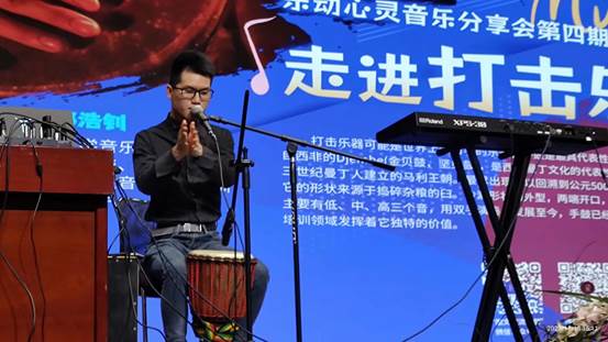 他从非洲鼓的起源、发展、声音特色、鼓种分类等方面进行深入分享,并通过曼丁音乐、流行音乐等多种音乐类型,让观众更加直观地感受到非洲鼓的魅力。他的精彩讲解让读者们对非洲鼓有了更深入的了解。随后,郑老师还通过演奏展示了非洲鼓的魅力,现场气氛热烈非凡。