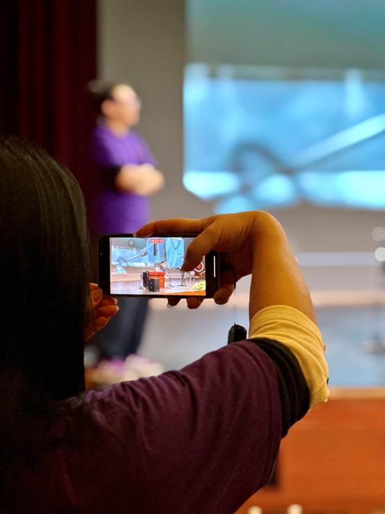 活动当天,布置场地和调音的工作人员和志愿者们早在14点就已开始工作,此时就有读者开始进场。活动在15点正式开始时,广州图书馆的负一层1号报告厅已经座无虚席,近600名读者怀揣着对音乐的热爱,共聚一堂。北京联合大学音乐系毕业的郑浩钊老师作为特邀嘉宾,为大家详细介绍了非洲鼓的起源、发展、声音特色以及鼓种分类。