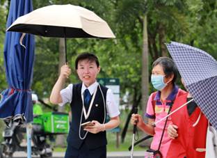 中午十二点多,视障读者蔡阿姨就提前到达了集合地点。根据馆员发给她的短信,当天他们需要在13点前到达广州地铁4号线蕉门站,然后在志愿者的陪同下步行前往南沙图书馆。为视障读者到馆“最后一公里”保驾护航的是广青启智服务总队携手帮扶分队,负责人茉漓一进群就收到了大家的欢迎,其中一位读者冼姨更是称呼她为“认识18年的志愿者好朋友”。不一会儿,读者们陆续出站抵达进行签到,匹配完陪同志愿者后就准备出发前往南沙图书馆。