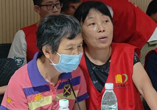 为蔡阿姨提供翻译的南沙图书馆馆员余可和广青启智服务总队志愿者陈雪贞