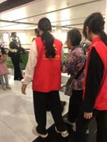 活动开场前,志愿者通过宣传海报和志愿者群积极报名参加,当天恰逢广州马拉松比赛,有部分路段封路及拥堵,地铁飞站的情况。广图工作人员提前预案,在活动开始前两天短信通知读者以及志愿者,提醒到馆最便捷的线路。活动开始前志愿者按时抵达指定地点集合培训,并身着红色马甲前往地铁APM线大剧院站口一对一接送并服务视障读者。