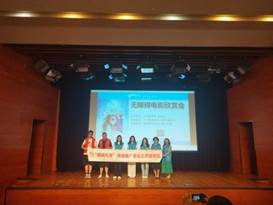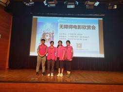 参与本次活动的星辰社一直是广州图书馆文化助残的合作伙伴,致力为视障读者提供各类口述影像服务,包括口述电影、口述纪录片、口述展览等。本次三位口述员虽然都是高中生,但是为了方便视障读者更清晰的“看”懂电影,他们作了充分的准备,利用课余时间写口述稿,进行口述练习,经过反复修改练习终成定稿。另外,为了进一步扩大社会影响力,我们借助I志愿平台,招募了10位助残志愿者积极热情服务本次活动的残疾人,受到一致好评。活动当天早上瓢泼大雨,广州图书馆工作人员以及志愿者布置好活动现场,不惧风雨到APM站和地铁珠江新城站接参与活动的视障读者。