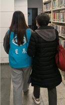 本次活动的伴读志愿者仍然是星辰社——华南农业大学小分队,负责接送APM和地铁站的视障读者入馆参与活动,并在活动过程中提供一对一的服务,协助视障读者借书、咨询、上洗手间等馆内活动。他们年轻有活力,热情又耐心,深受读者喜爱,受到一致好评。