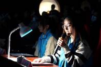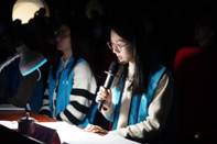 灯光逐渐暗下来,“青翠的竹叶在风中摆动,婆娑的竹影印在朱红的宫墙上。阳光照射下,一半的竹叶隐匿在阴影里,一半的竹叶染上金黄……”口述员详述着影片中的场景,依次呈现了不同建筑的特色、功能,画面中的人物形象等,观众聚精会神聆听画面的转换。口述员蔡健欣、冯秋怡、杨晓莉在曾海燕老师的细心指导下,加上有了前几期口述员的成功经验以及自身勤奋努力,凭借流利的讲解和专业的解说技巧,折服了现场观众。为了更好呈现活动效果,曾老师带领口述员利用休息时间多次在广州图书馆进行口述练习。整场活动口述非常清晰流利,对片中的场景解说非常到位,现场观众发出热烈掌声,现场口述效果显著。