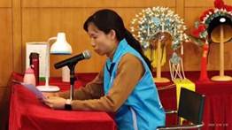 红线女艺术中心国家二级演员葛锐娟培训志愿者穿戴“盔头”