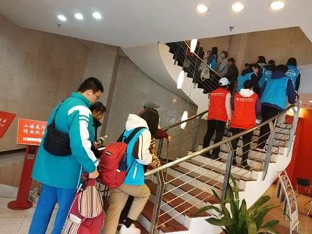 视障人士虽然视力受限,但是他们对于生活的热爱,对于出行旅游参观的热情并没有减少。他们渴望能读诗,也渴望能去远方。他们出行难一直是社会关注的重点问题,广州图书馆积极调动社会力量招募了20位来自华南农业大学外国语学院的伴读志愿者。在活动前给志愿者发放红线女艺术中心参观讲解词,以便在参观时能够进行一对一的口述,让视障读者全方位对红线女艺术中心进行触读和听读。并且在戏服穿戴互动环节前,红线女艺术中心工作人员对志愿者进行了戏服和“盔头”穿戴的培训,提高专业服务技能。活动当天,志愿者在地铁5号线潭村站集合一对一引领视障读者,一路护送至目的地参与活动。