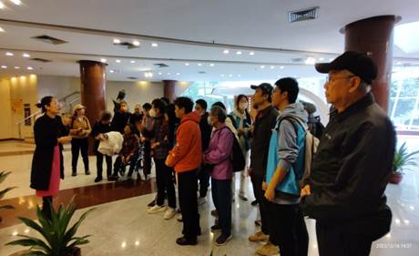讲解员带领视障读者走读参观红线女艺术中心