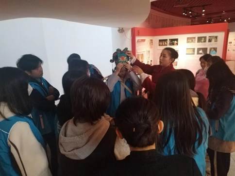 视障读者体验穿戴戏服“盔头”体验合照