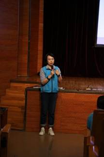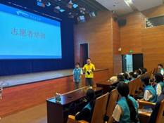 活动开始前,资深助盲志愿者邬德盛对本次活动的服务技巧进行基本的技能培训,引导星辰社华农小分队的志愿者们如何帮助视障人士行走、上卫生间等并进行示范。随后志愿者前往地铁站口一对一将视障读者引领到报告厅参加活动。